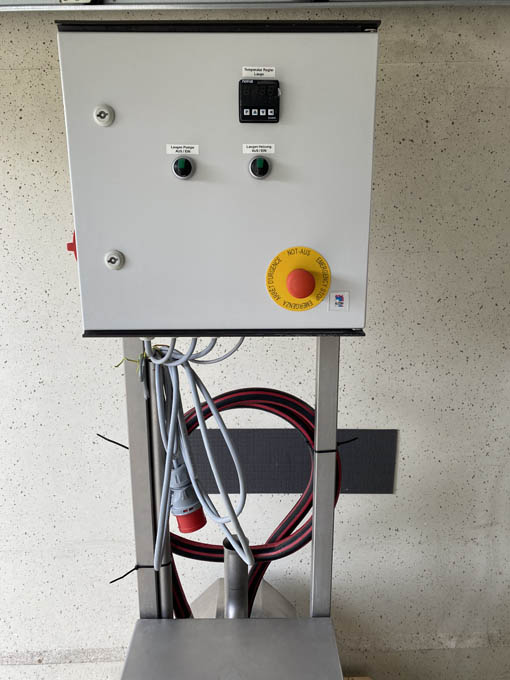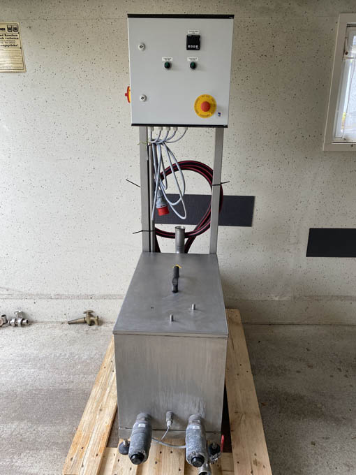 elektrisch beheizt, 5 Pumpen, 2 Rührwerke, 1 Hackwerk, 1 Zirkulationspumpe für Heißwasserkreislauf zum Heizen.