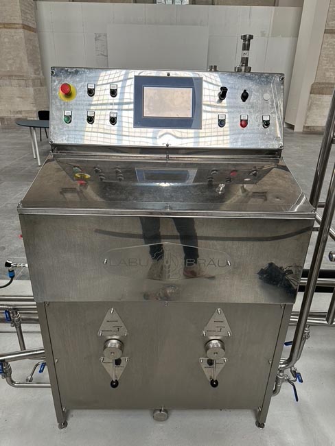 Gär- und Lagertanks,1 Wasserreserve 20 hl, 1 Wasserreserve 20 hl, isoliert mit Kühlung, 2-Walzenschrotmühle, Certuss Dampferzeuger,