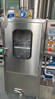 with IDM, adjusted for 0,33l, 0,5l, 2,0l bottles and 5l cans, capacity up to 800 b/h at 0,33l bottles, with frequency controlled beer pump,